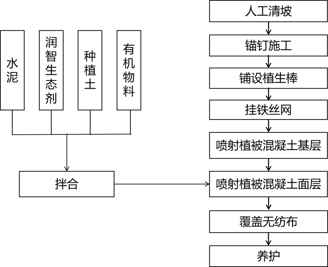 左壩肩邊坡位于左壩壩肩,面積約2200m2,最大高約39m,分三級,坡度40~70°。本邊坡采用植被混凝土生態恢復技術;馬道沿外側砌筑擋土埂形成種植糟,種植槽內覆土種植迎春(或薔薇)和爬山虎。